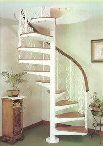 steel pole and ballusters with a wooden handrail. The stair is custom made