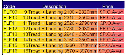 Steel handrail with steel spindles. PVC tread inserts or carpet.